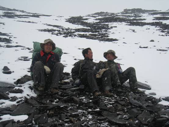 每當自己面對工作和生活的壓力想偷懶時,腦海中便浮現出了這樣的片段,想起2011年6月14日進尕牙合打游擊時郭剛在雪中滑倒后留下的百米劃痕;想起呂志紅在暴雪中攙扶起摔倒的賈曉林;想起王博聞放下沉重的行囊彎腰撿柴時而顯露出的疲憊;想起張鵬舉看到野牦牛糞燃燒起來時露出激動的笑容;想起高浪面對食物被烤熱時而顯露的興奮。這些優美而催人淚下的片段發生在我身邊的戰友中。他們是樸實的,是真誠的,是敢于面對一切困難的。他們用實際行動證明自己是一名合格的地質工作者,面對惡劣的自然條件,他們選擇了與我站在同一條戰線上繼續前進。用自己的實際行動譜寫下以深山為家,以找礦為業,以艱苦為榮的輝煌篇章。
